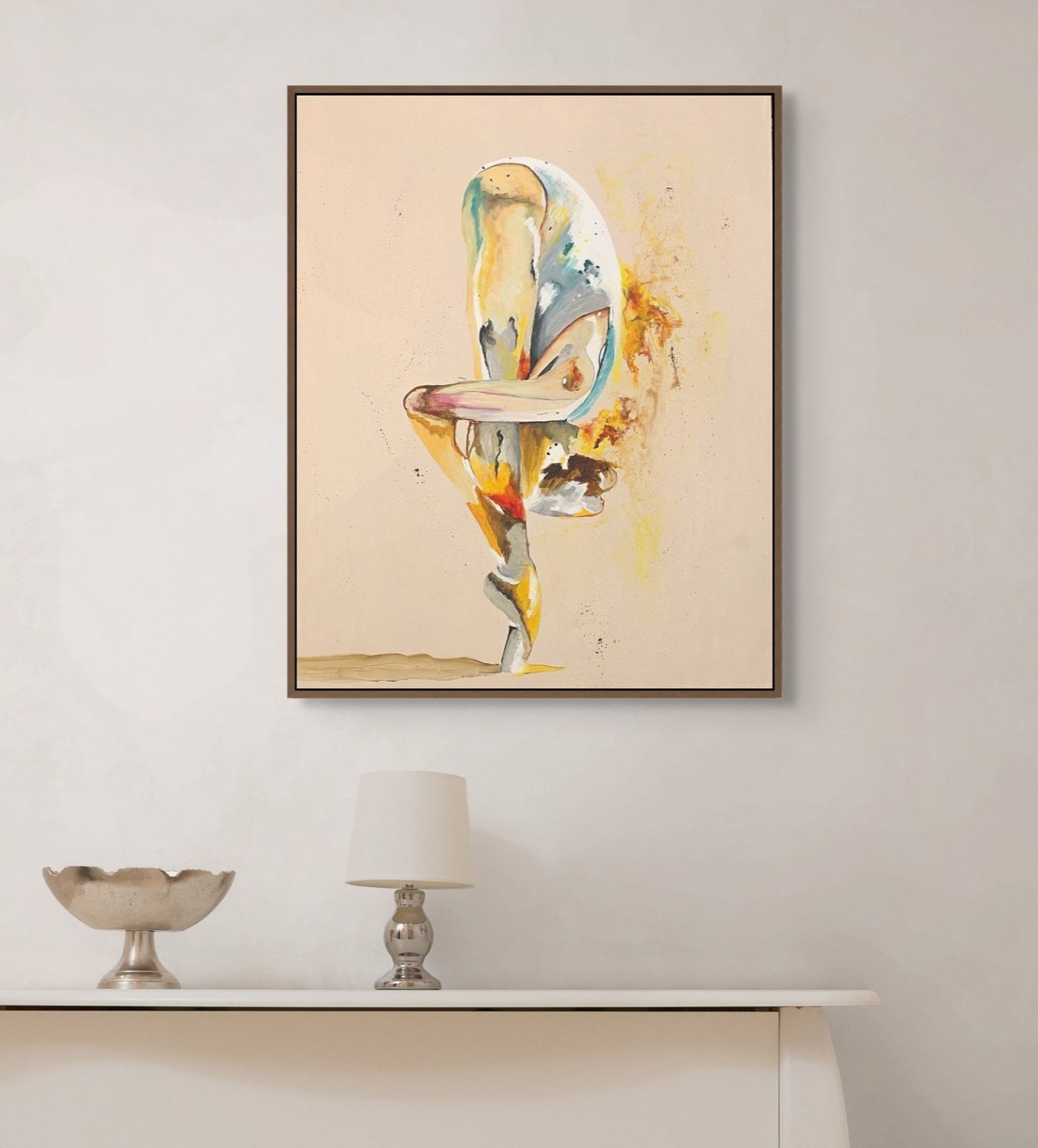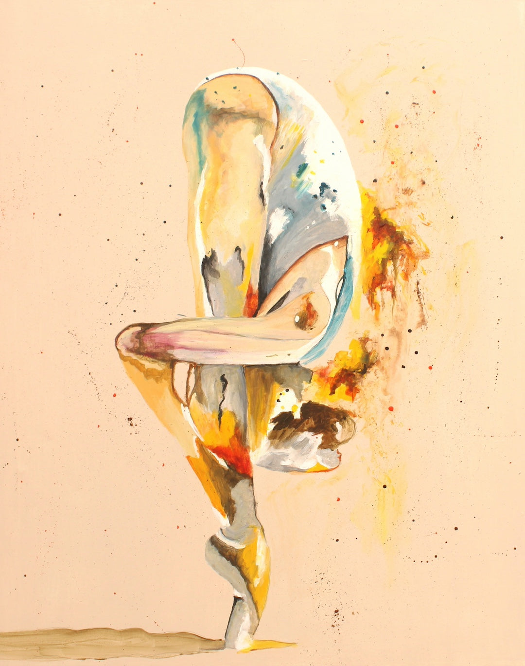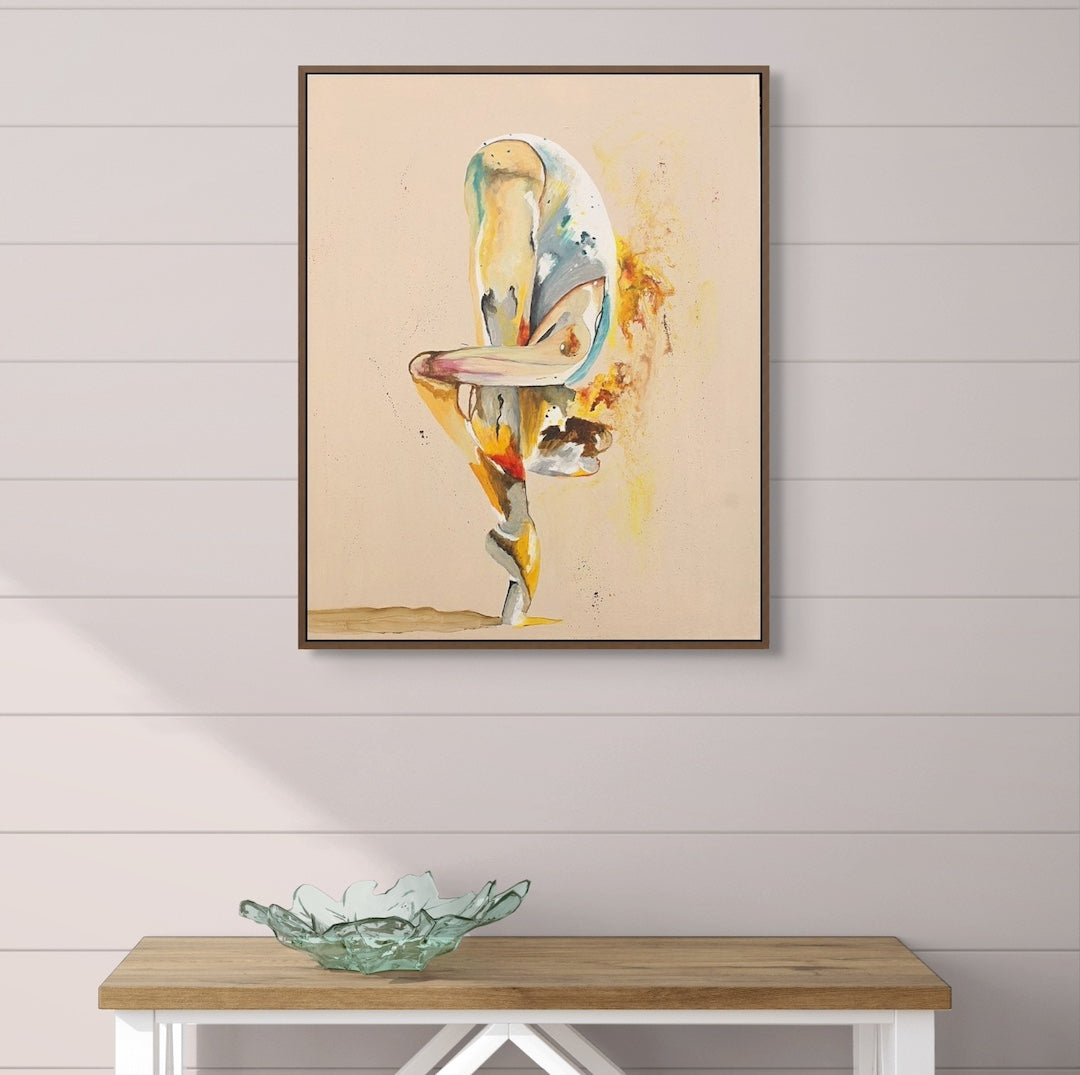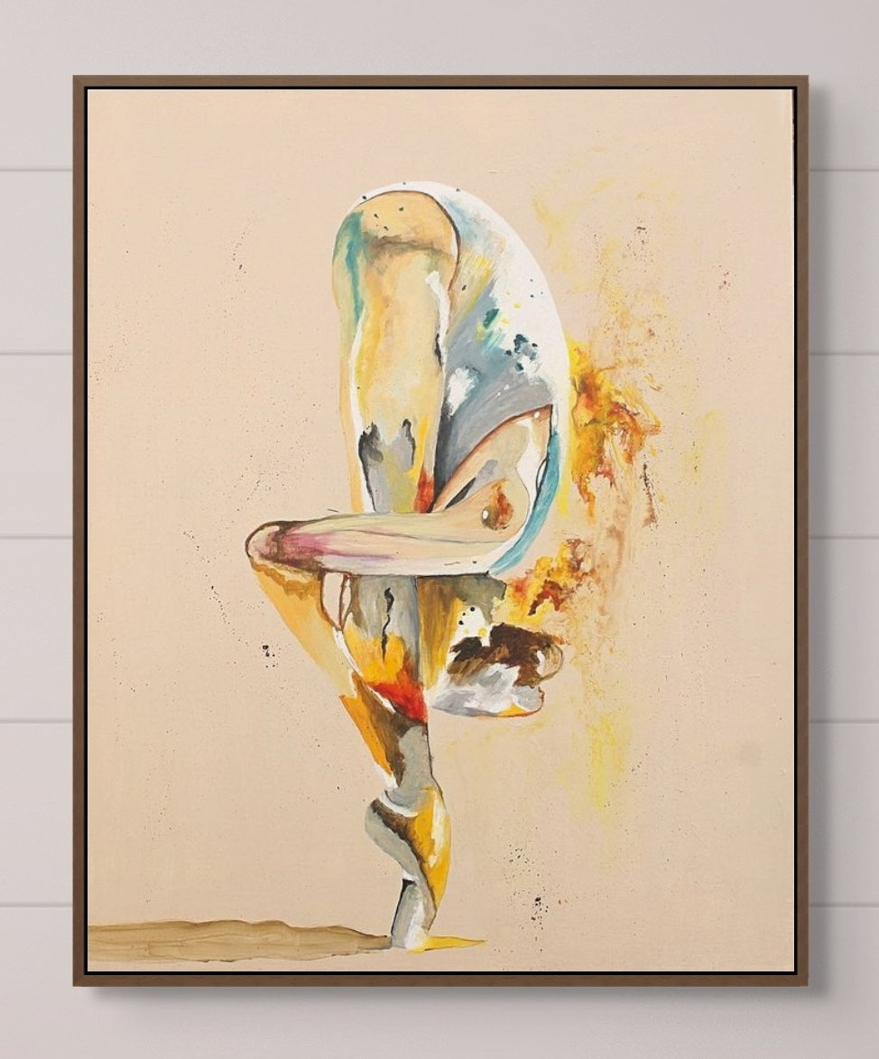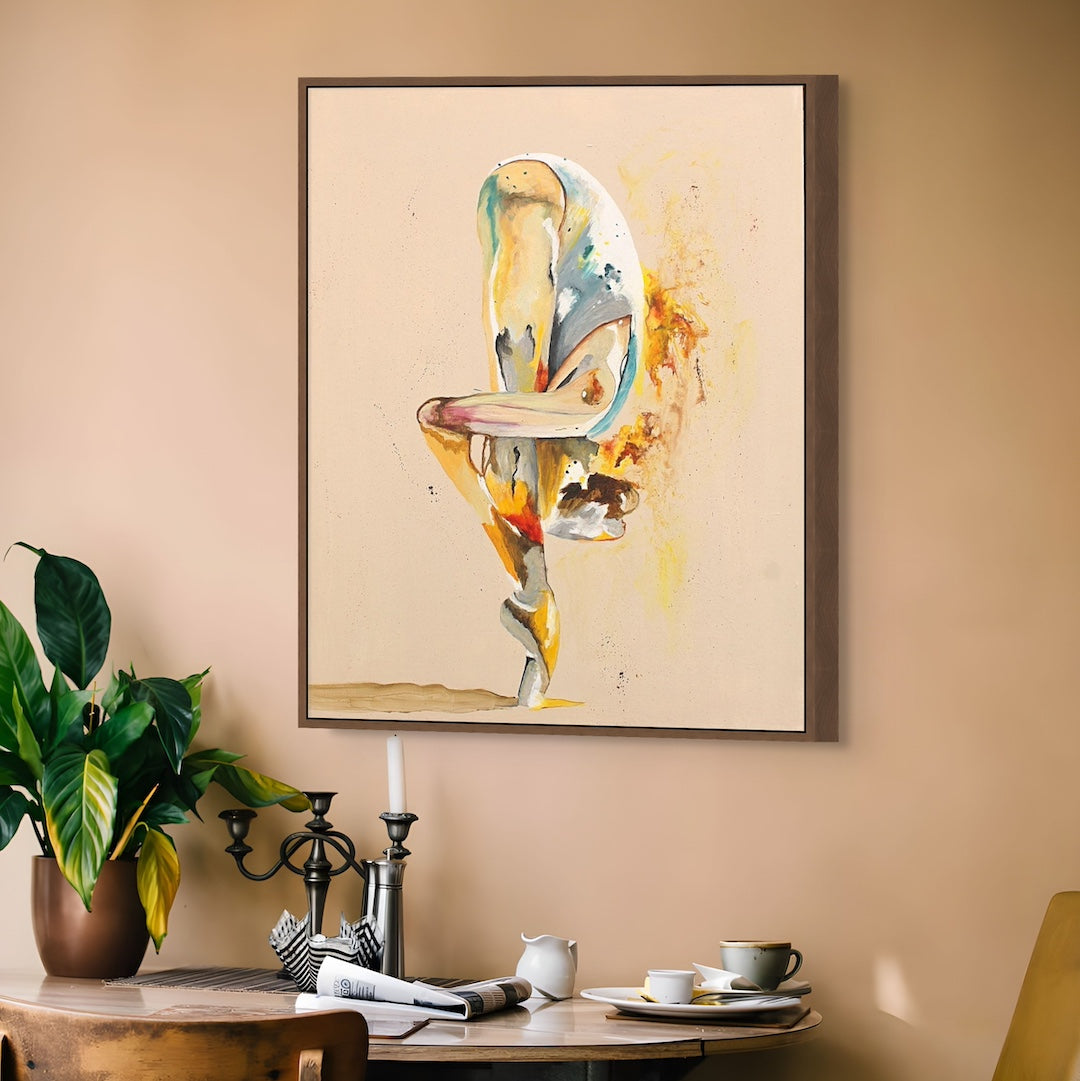 This piece was inspired by the quiet moments when strength looks different, not loud or outward, but contained and personal. The dancer’s inward bend holds both tension and grace, while the colours burst outward like sparks of life. I imagine this painting in a space as a reminder that even in stillness, we are alive with energy and possibility.