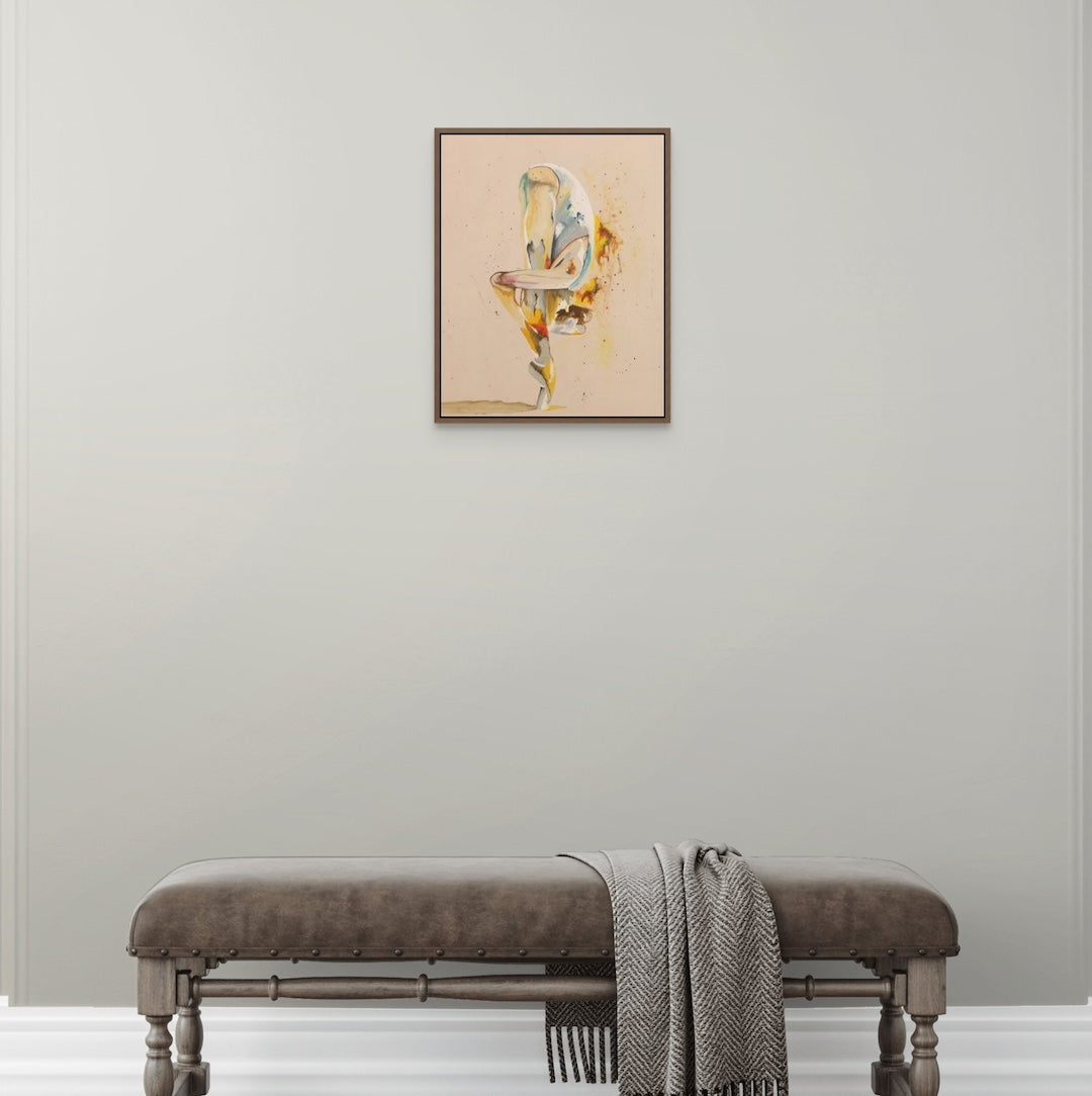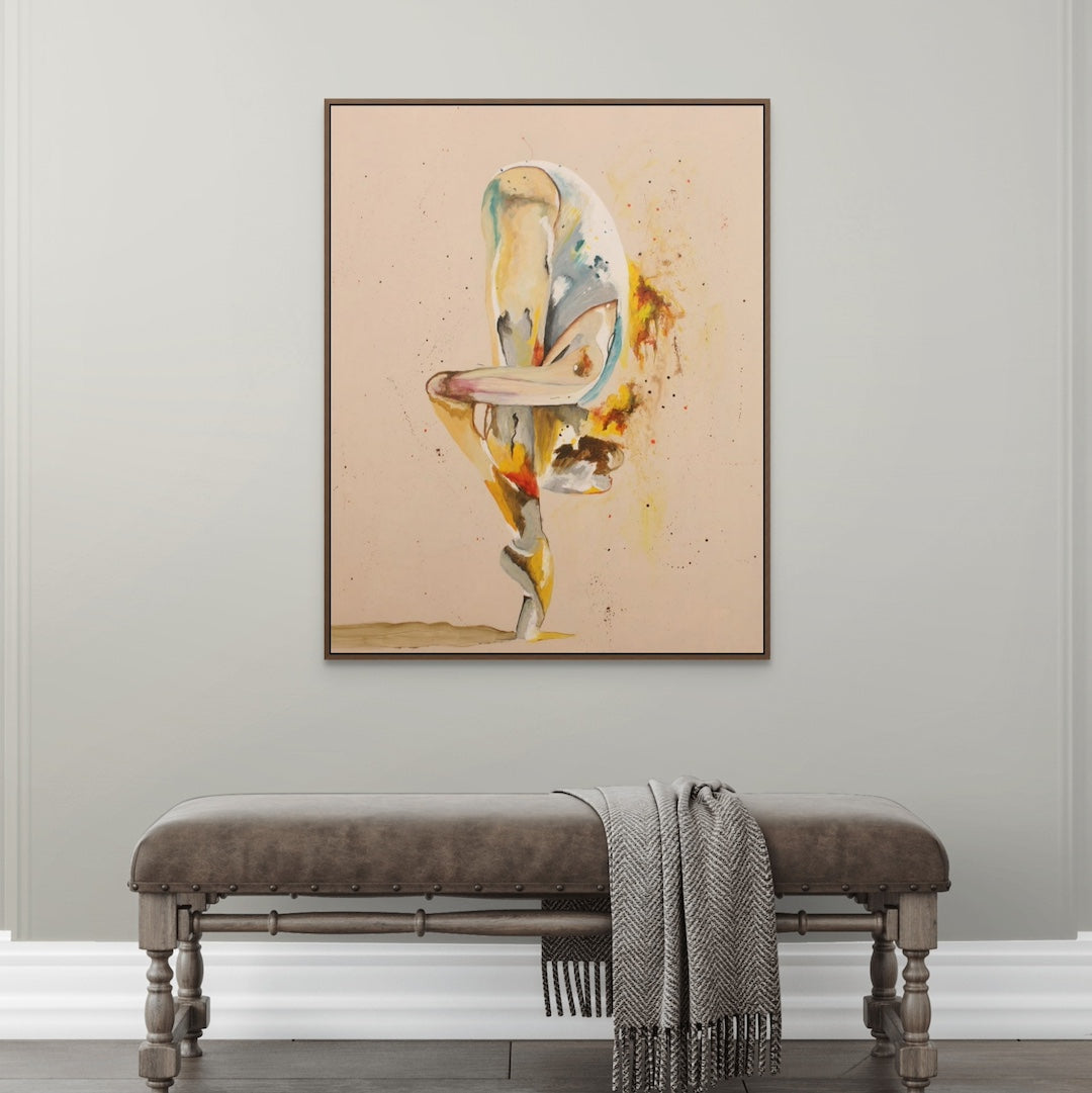 Balance of Belonging was inspired by the quiet moments when strength looks different, not loud or outward, but contained and personal. The dancer’s inward bend holds both tension and grace, while the colours burst outward like sparks of life. I imagine this painting in a space as a reminder that even in stillness, we are alive with energy and possibility.