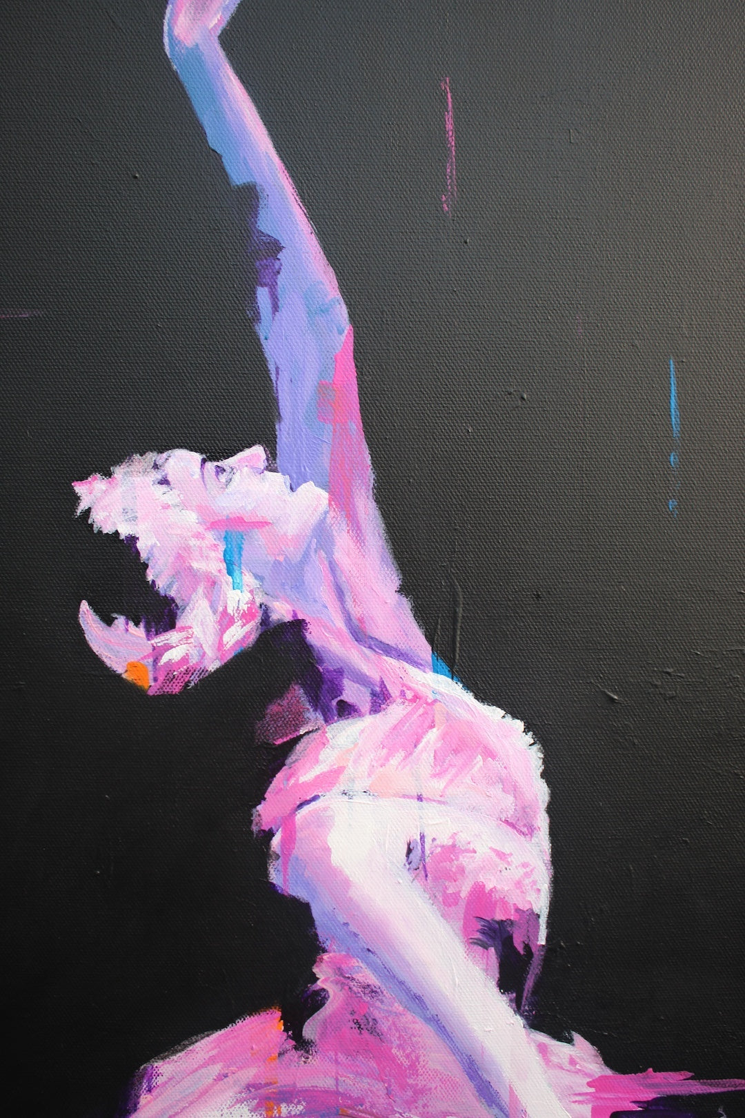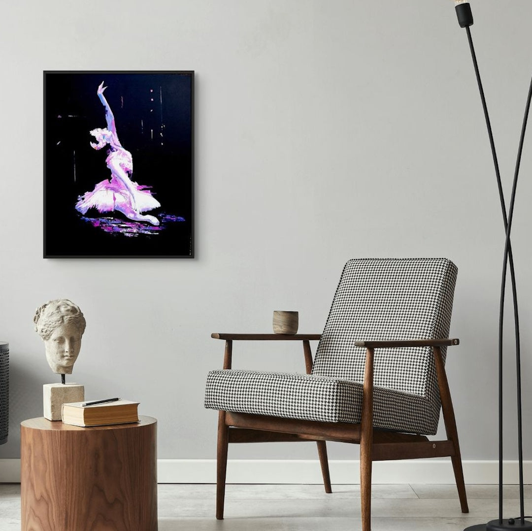 When I painted this piece, I wanted to explore that balance dancers hold, bold yet vulnerable, strong yet fluid. The deep black background became the stage for her colours to glow even brighter, like life itself refusing to be dimmed. I imagine this work bringing a sense of drama and sophistication into any space it belongs.