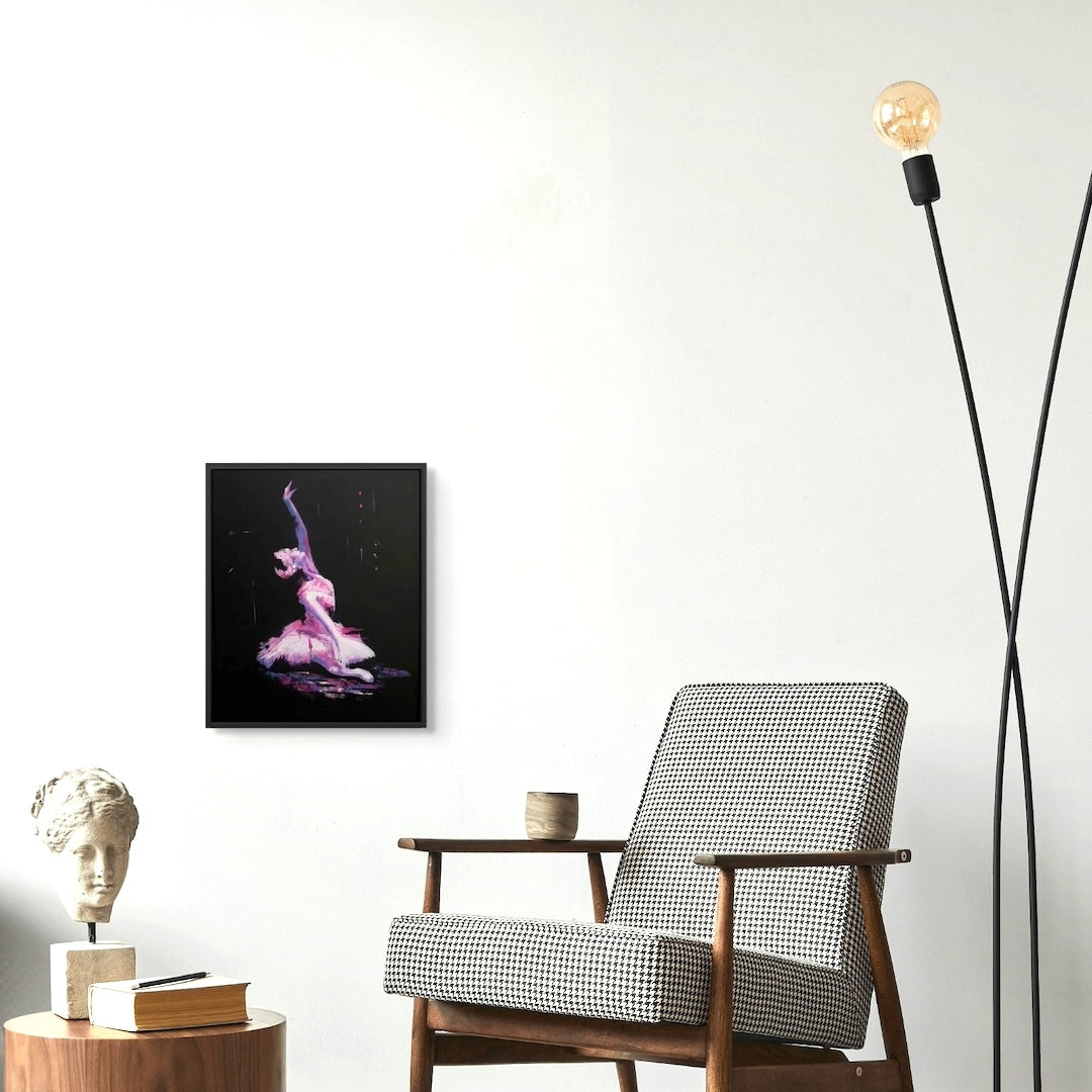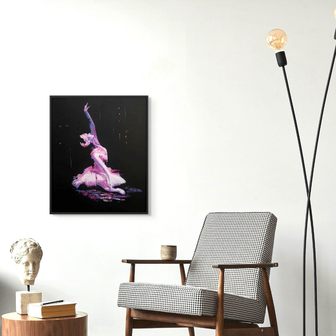When I painted Poised for Eternity, I wanted to explore that balance dancers hold, bold yet vulnerable, strong yet fluid. The deep black background became the stage for her colours to glow even brighter, like life itself refusing to be dimmed. I imagine this work bringing a sense of drama and sophistication into any space it belongs.