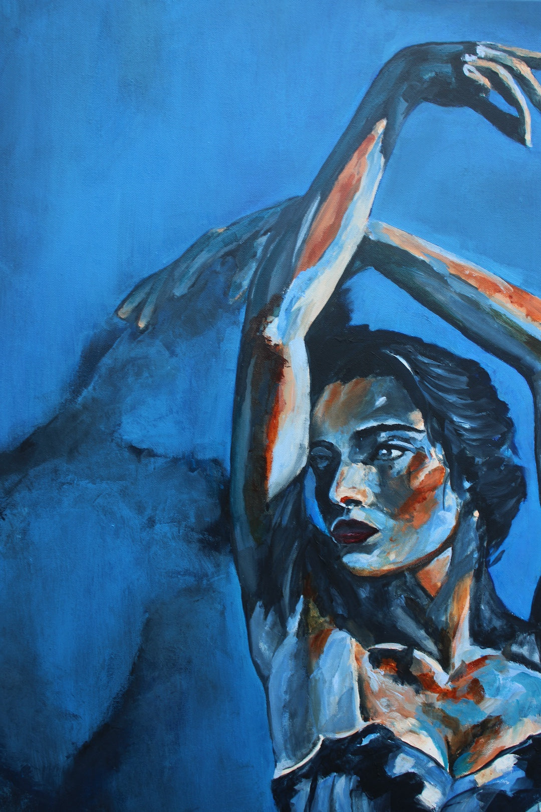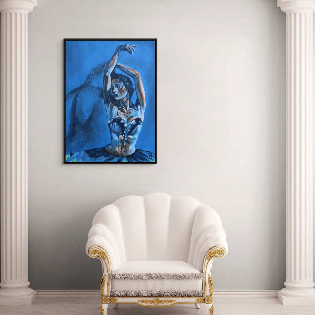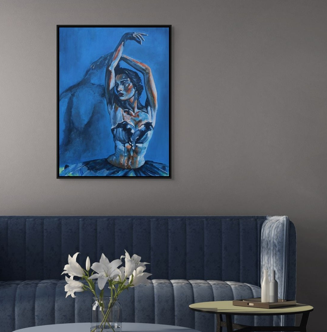 Because of the Blue is a ballet-inspired figurative painting that explores how colour carries emotion through the body. Blue sets the emotional tone - calm, reflective, and quietly powerful. Rather than capturing movement in action, the work holds a moment of stillness, balance, and inner presence, echoing the discipline and grace found within classical ballet.