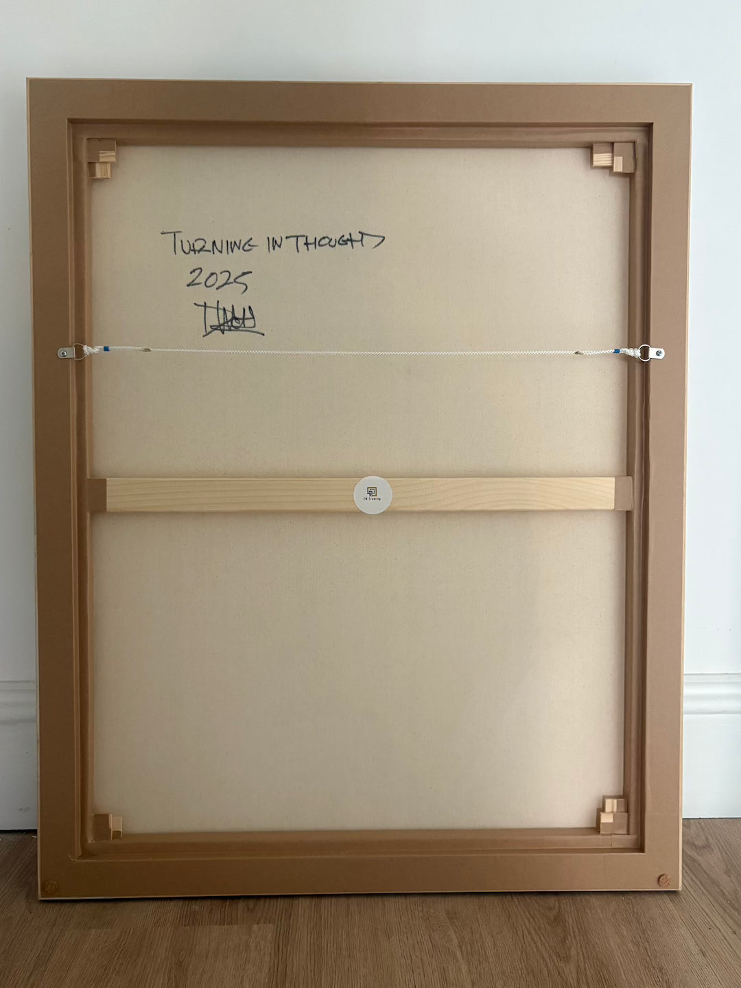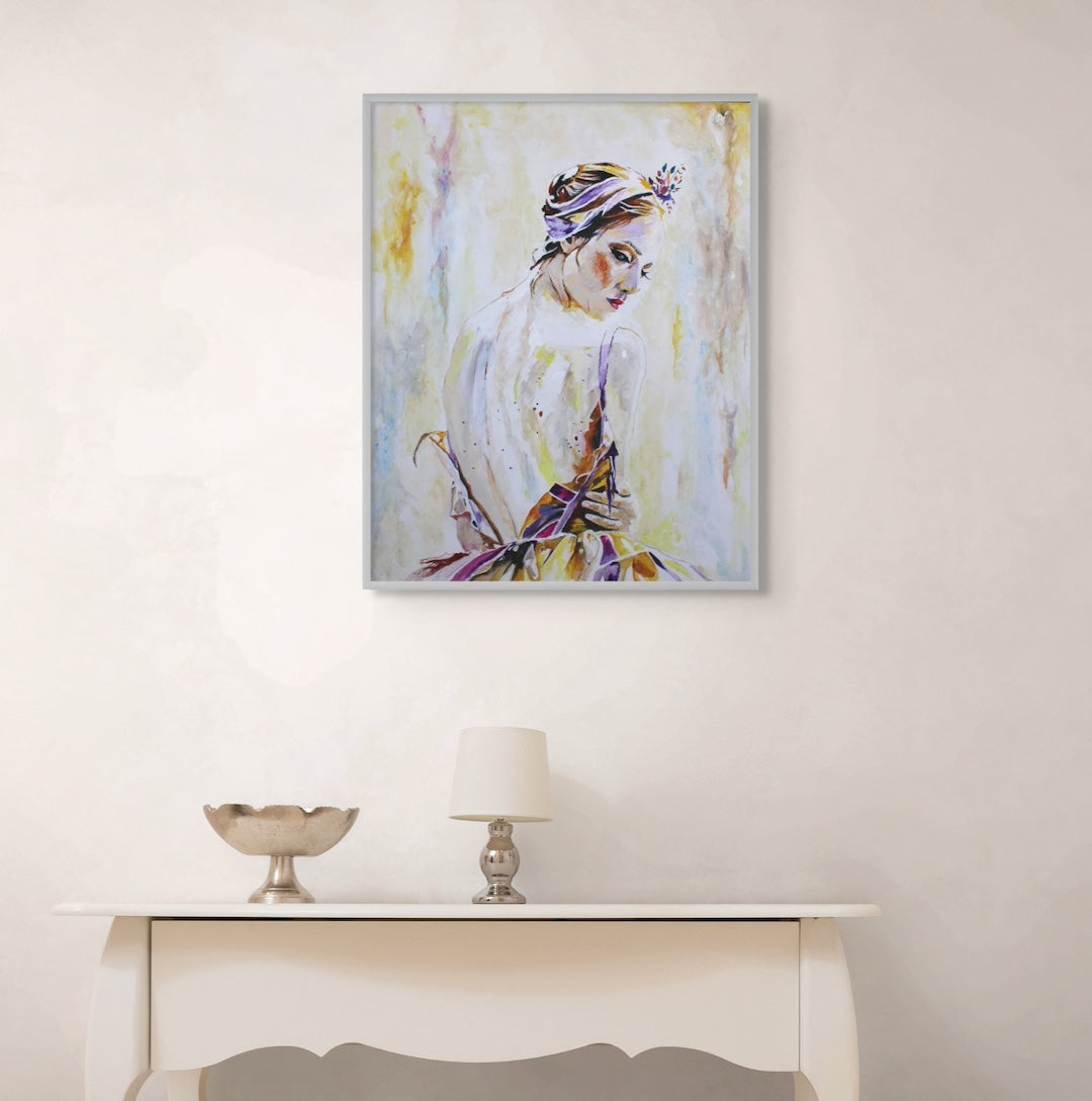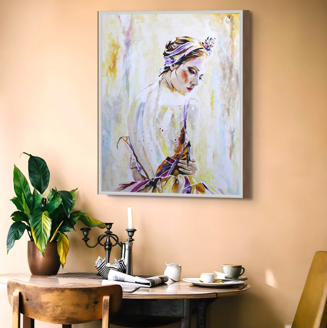 When I created “Turning in Thought,” I wanted to capture more than elegance, I wanted to show the intimacy of being lost in one’s own world. The soft tones and expressive strokes mirror the warmth of that private moment. I imagine it hanging in a room like a whisper of calm, of beauty that feels both timeless and personal.