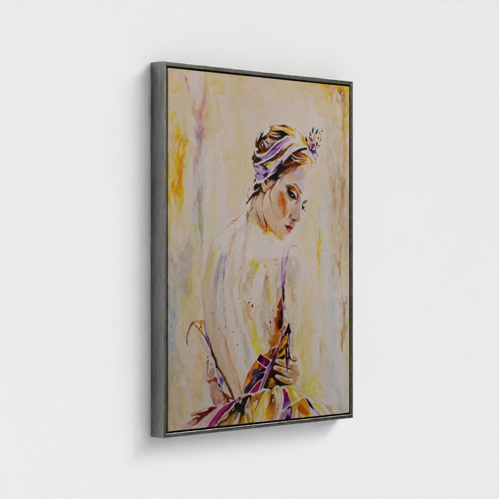 When I created “Turning in Thought,” I wanted to capture more than elegance, I wanted to show the intimacy of being lost in one’s own world. The soft tones and expressive strokes mirror the warmth of that private moment. I imagine it hanging in a room like a whisper of calm, of beauty that feels both timeless and personal.
